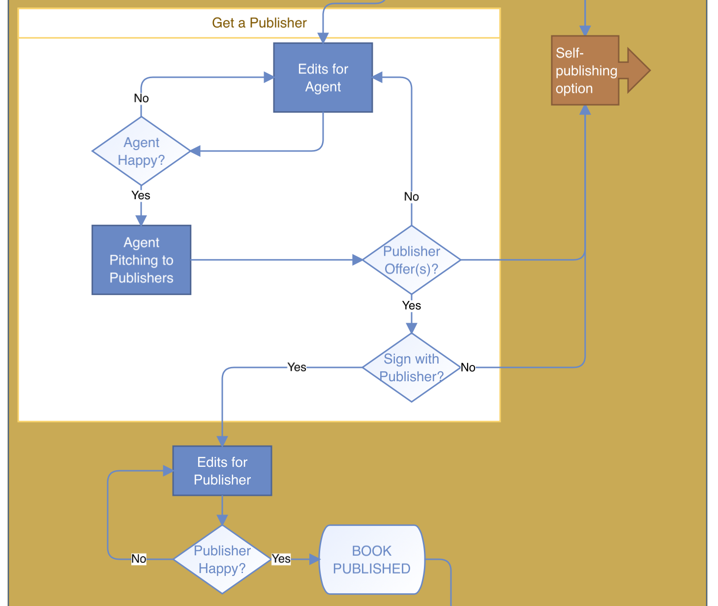 It is, of course, possible that the agent fails to get interest enough for publishers to offer to buy your book. Not all agented books get sold to publishers. So what happens then? Either you lick your wounds and head off to write another book that might be more commercial, or you enter another round of editing with the agent (less likely). Or, you can at this stage still slip out and into the self-publishing world.