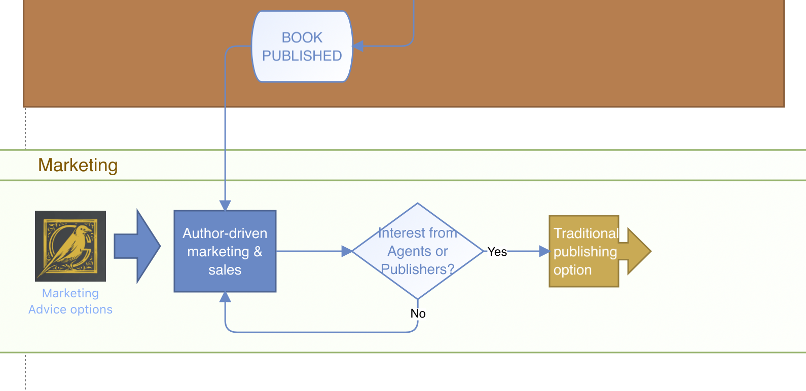 If you are fortunate enough to sign with the publisher (hopefully for a nice big chunky advance) then you’ve made it to the finishing post for this web page. The final step is the marketing and sales step which, for traditionally published books, is largely managed by your publisher.